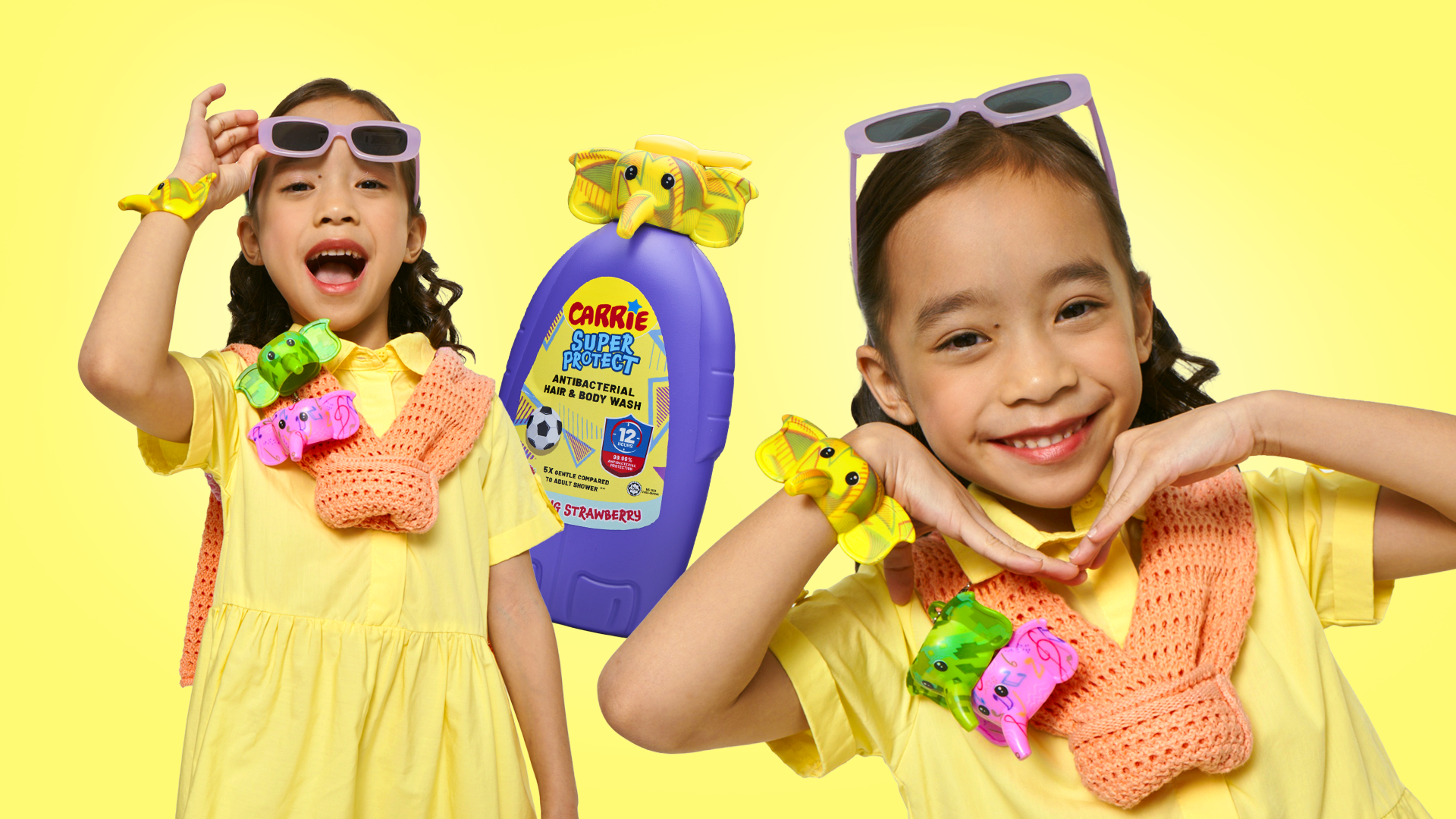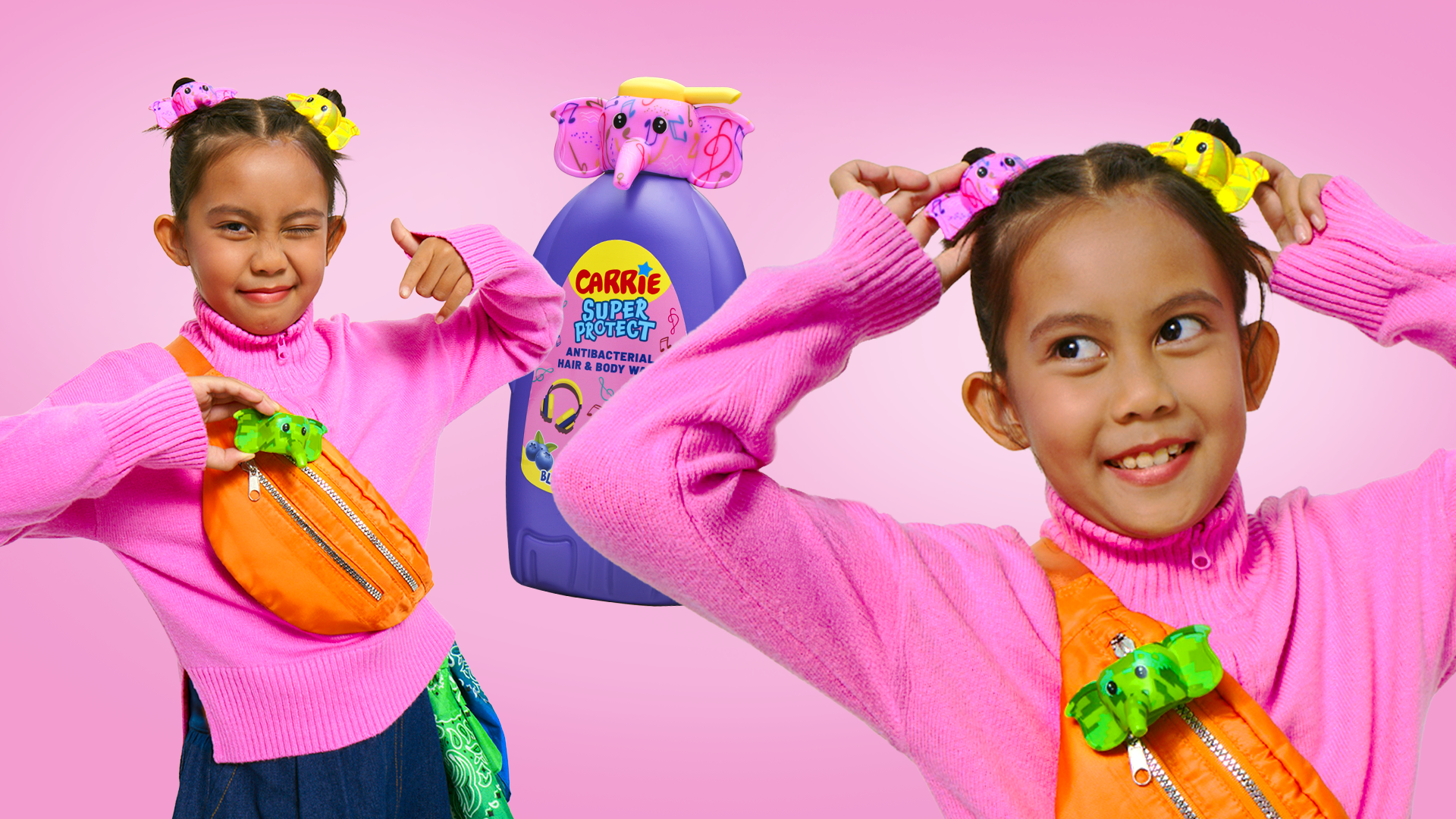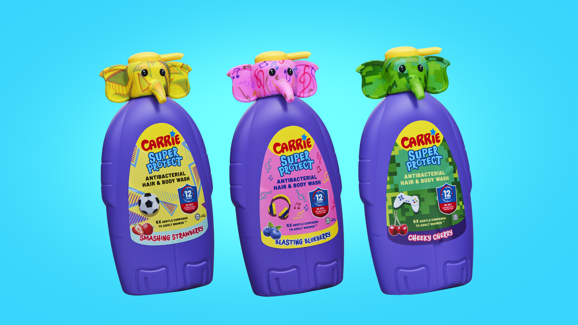 Carrie Junior relaunched its antibacterial hair and body wash for tweens (7–13) as Carrie Super Protect. Our task was to design a bold new packaging that also worked as a collectible.