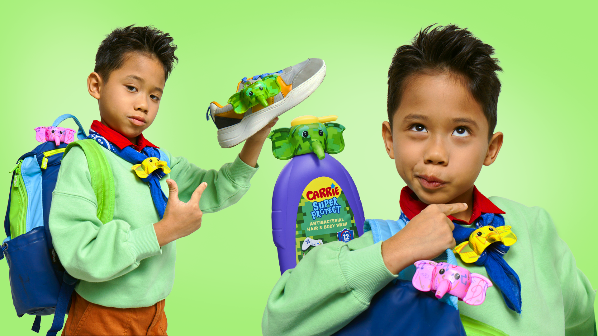 We refreshed the brand’s iconic mascot, Carrie the elephant, with a modern, playful edge. The design features detachable head that transforms into a wearable accessory—keychain, badge, charm, or whatever kids choose.